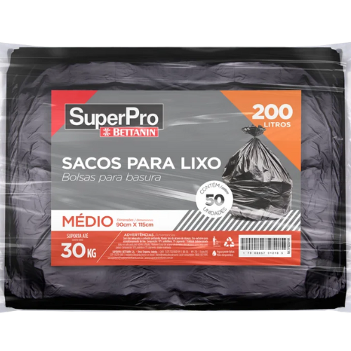 Os Sacos para Lixo da SuperPro destacam-se por serem produzidos com matéria-prima virgem, garantindo maior resistência, qualidade e segurança no manuseio dos descartes.Com capacidade de 200 Litros o saco tem capacidade de até 30KgComprando com a Tríade você tem segurança na entrega do seu produto, pois somos distribuidores oficiais Superpro Bettanin há mais de 15 anos. Ideal para: condomínios, escolas, cozinhas industriais, hotéis, igrejas, residências, escritórios, restaurantes, clínicas, indústrias, laboratórios, e empresas onde a limpeza é fundamental